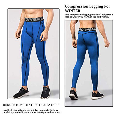 Minghe Mens Compression Cool Dry Running Base Layer Cycling Workout Athletic Sports Leggings, 3 Pack, Black+grey+blue, L