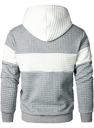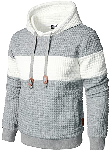 HOOD CREW Men’s Sweatshirts Long Sleeve Pullover Patchwork Plaid Jacquard Hoodie Casual Drawstring Hoody Top