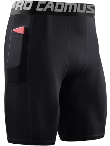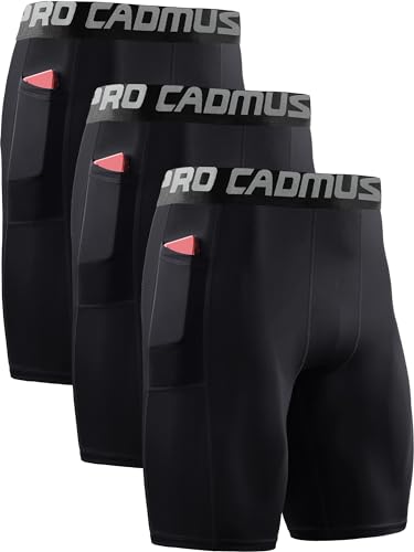 Cadmus 3 Pack Men Compression Gym Running Sports Underwear Base Layer Shorts with Side Pockets