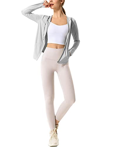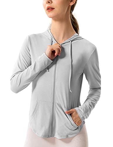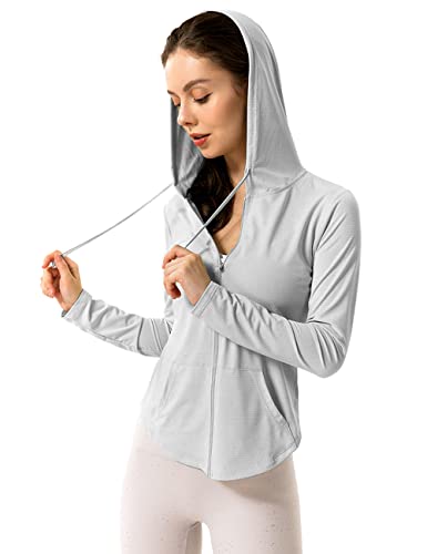Hanyomo Women’s Long Sleeve UPF 50+ Sun Protection Jacket Hooded Fitness Shirt with Pockets Yoga Full Zip Athletic