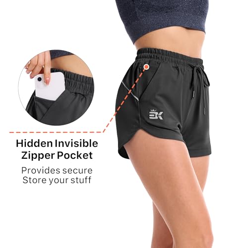 ZENWILL Womens 3″ Inzip Running Shorts, Mid Waist Lightweight High Stretch Gym Athletic Shorts for Women Zipper Pockets