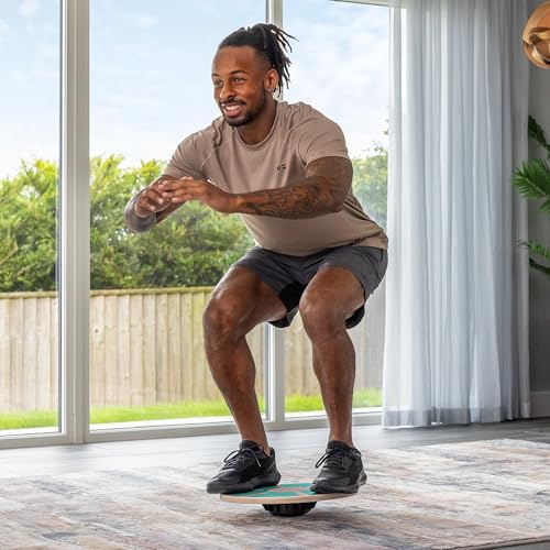 LIGHTWEIGHT & PORTABLE: The balance board has a diameter of 40cm (approx.), a height of 8cm (approx.), and weighs 1.4kg (approx.). Lightweight and compact, it’s perfect for taking on your travels, so you can squeeze in a spot of balance training during your break at work. Its compact size also makes it easy to store away when your work out is over.