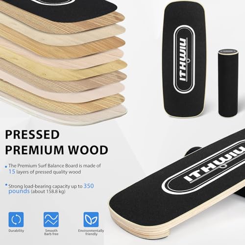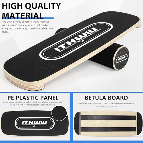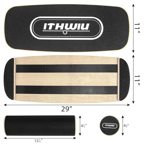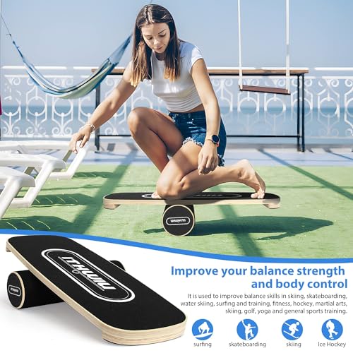 OUUTMEE Natural Wooden Balance Board with Roller for Balance, Stability and Full-Body Strength Workout for Functional Training, Black