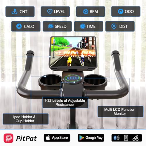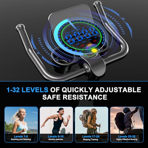 LCD Display & APP Data Tracking: Exercise bikes indoor bike trainer with multi-functional LCD monitor can record your time, speed, distance, calorie consumption, and so on in detail to help you track your fitness progress in real time, which can help you exercise more scientifically.