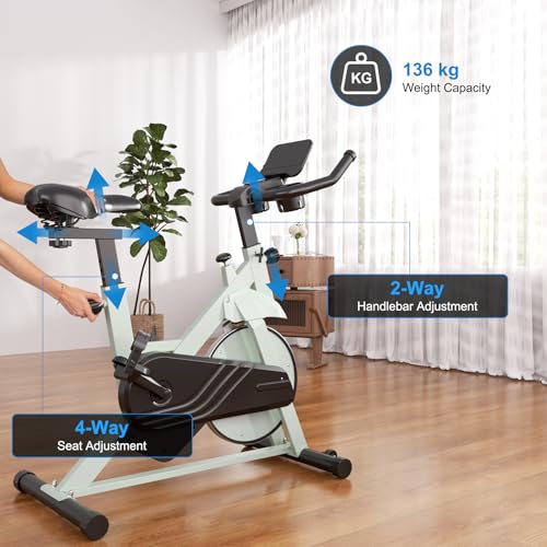 MJWW Exercise Bike, Magnetic Resistance Stationary Bikes for Home with Silent Belt Drive System, Indoor Cycling Bike with 136kg Weight Capacity, LCD Monitor