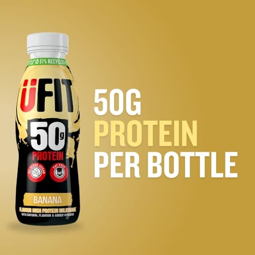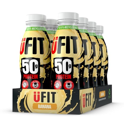 UFIT High 50g Protein Shake – Banana Flavour – No Added Sugar – Low in Fat – Ready to Drink – Pack of 8 x 500 ml (Packaging May Vary)