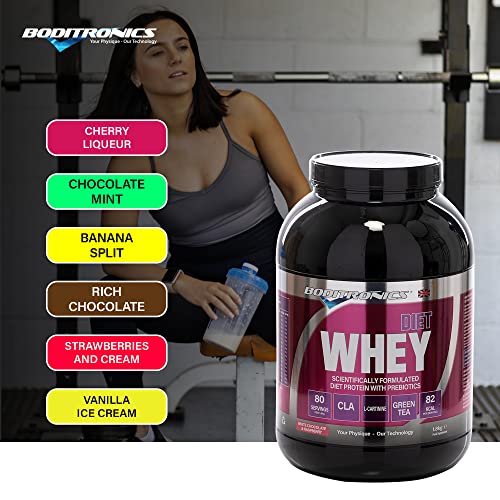 Boditronics Diet Whey Protein Powder with High Protein Blend and High doses of CLA, Vitamins C & E for Lean whey Protein Shake Powder (White Chocolate and Raspberry, 1.8kg)