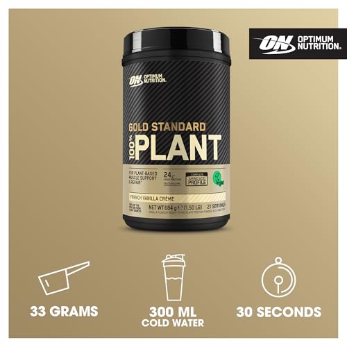 Optimum Nutrition Gold Standard 100% Plant Based Protein Powder for Men and Women, Vegan Protein Shake Powder, Post Workout, or anytime throughout the day, Vanilla Flavour, 21 Servings, 684g