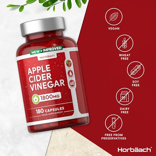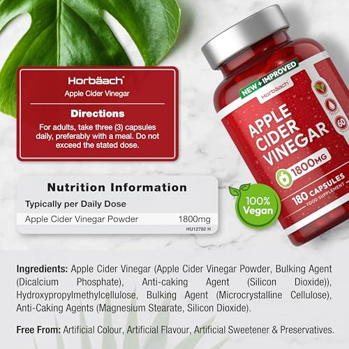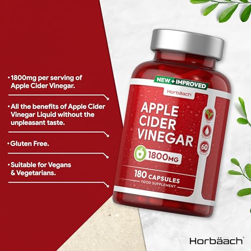 Apple Cider Vinegar Capsules 1800mg | High Strength ACV | 180 Vegan Capsules (Not Tablets) | 60 Day Supply | by Horbaach