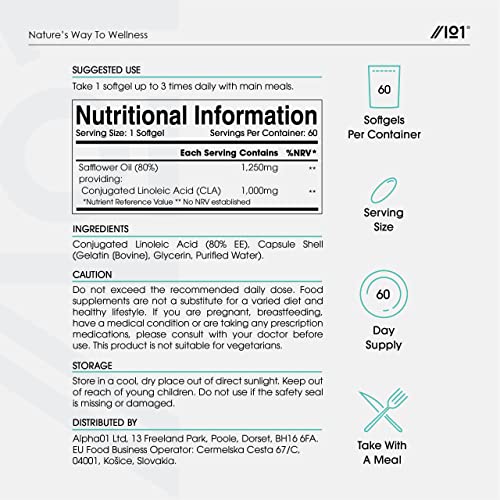 Be the first to review “CLA Softgels 1000mg – Conjugated Linoleic Acid (CLA) Tonalin – Diet and Weight Loss Supplement – 60 Softgels – by Alpha01”