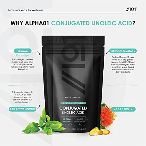 CLA Softgels 1000mg – Conjugated Linoleic Acid (CLA) Tonalin – Diet and Weight Loss Supplement – 60 Softgels – by Alpha01
