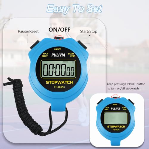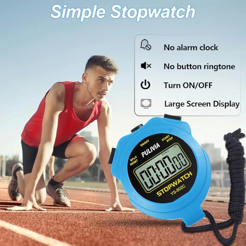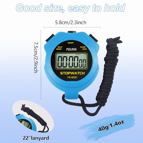 Digital Stopwatch Timer Only Stopwatch Mode, ON/OFF No Bell No Whistle Silent Basic Operation Children Friendly, PULIVIA Sport Stop watch for Coaches Kids Swimming Running, Blue