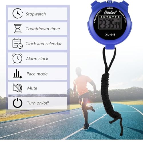 Stopwatches, Digital Sports Stop watch, referee kit, Handheld stopwatch Split Lap Timer, Neck Stopwatch, Shockproof Waterproof Stopwatch with LCD Display for Coaches Swimming Running Training (Blue)