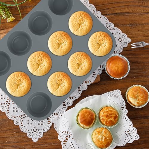 9in1 Nonstick Silicone Baking Cake Pans Moulds Sheet Set for Oven,Heat Resistant Bakeware Utensils Mold Tools Kit for Pancake Donut Cupcake Bread Loaf Muffin Savarin(Grey)