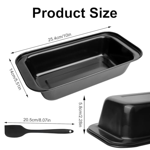 🍞【Package includes】: 2 x black bread pans, measuring 25.4 x 13 x 5.8 cm/10 x 5.5 x 2.28 inch(LxWxH), capacity is about 2lb; and 1 x dough scraper (20.5 cm/8.07 inches), to help you evenly brush butter, to meet a variety of baking needs