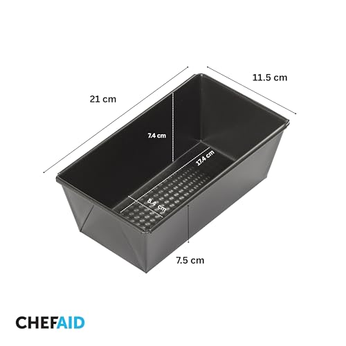 Chef Aid Non-Stick 2lb Loaf Tin, 900g Traditional Rectangular Bread pan Ideal for Bread, Loaves, Cakes.Handwash, Fridge and Freezer Safe.,Black, 21cm x 11.5cm x 7.5cm