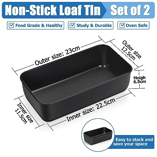 GOOD VALUE 2 PIECES: Measures 23.5 x 12.5 x 6.5cm, Stackable and saves you space, A two-piece set that can efficiently complete 2 different flavor of breads at a time, Great for making coffee cake/banana bread/zucchini/meatloaf/toast/ice cream for family or friends on any occasion, Can also be used as roasting lasagna, meat, veggies, Freeze safe and used as ice cream pan