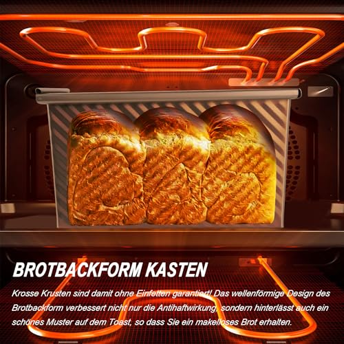High-quality coatings: Our bread pan is equipped with a high-performance non-stick coating that is heat-resistant up to 260 °C. Crispy crusts are guaranteed without greasing! The wave-shaped design of the bread baking pan not only improves the non-stick effect, but also leaves a beautiful pattern on the toast, so that you get flawless bread