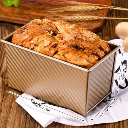 Loaf Tin with Lid 1lb(450g), Non Stick Bread Tins for Baking 21x12x11.7 cm, Steel Toast Bread Pan Bread Tins for Baking Bread, Gold Bread Pan with Lid