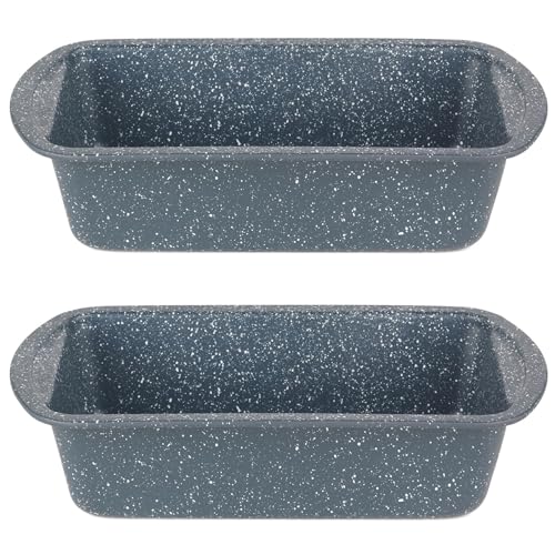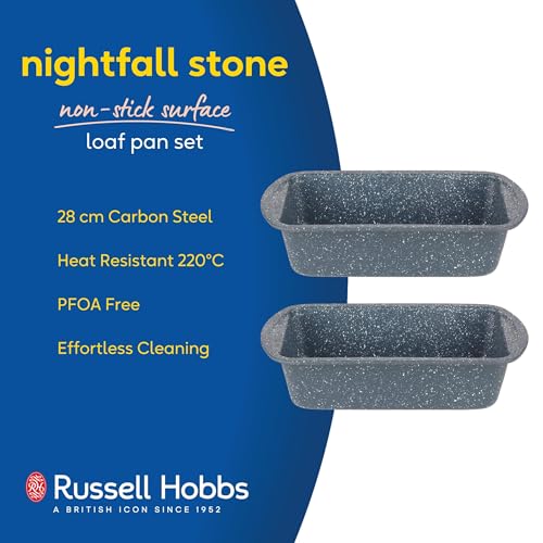 Russell Hobbs COMBO-5443 Non-Stick Loaf Pan Set of 2, 28cm Carbon Steel Bread Tin with Handles, Easy Clean for Cakes, Bread & Malt Loaf, Nightfall Stone Collection, Blue Marble, 5 Year Guarantee