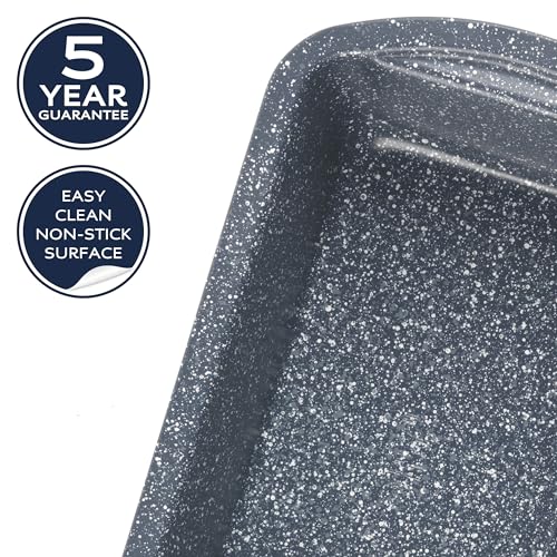 Made from strong carbon steel with a blue marble coating the bakeware is brilliantly non-stick, suitable for any oven up to 220°C.