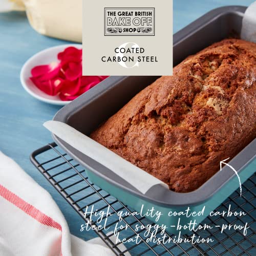 The Great British Bake Off 2lb Loaf Tin, Bread tin for Baking, 900g Capacity, for Banana, White & Seeded Loaves, Official GBBO Logo, Non Stick Coated Carbon Steel, Duck Egg Blue, 23cm x 13cm x 7cm