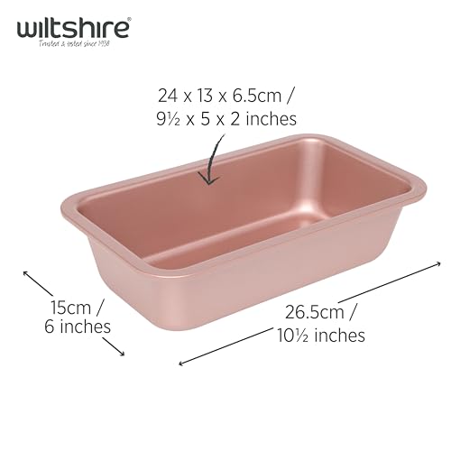 Wiltshire Rose Gold Loaf Pan, PFOA PTFE Free, Robust Baking Pan, Non-Stick Coating, Bakeware for Banana Bread, Cake Mould, 24x13x6.5cm