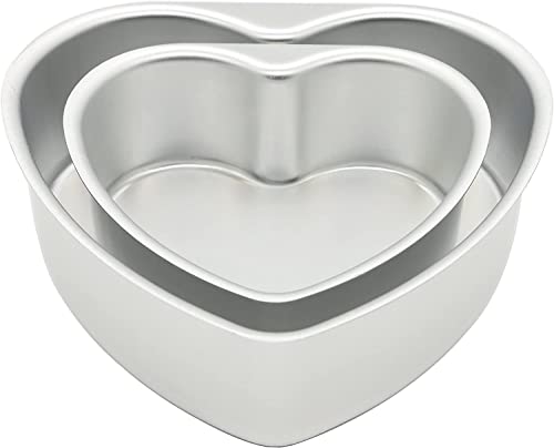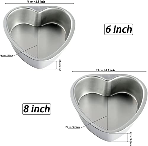 2 Pack Heart Cake Tin Set of 6 inch & 8 inch Non-Stick Deep Aluminum Deep Baking Tin with Removable Bottom Cake Baking Pan Cake Mould Tin for Baking, Bakeware Wedding Birthday Christmas Party