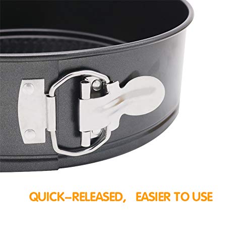 【Nonstick and Quick-Released Spring Loaded Pan】 Design of non-stick coating & honeycomb bottom allows your cake be released from spring form pan more cleanly without destroying the shape. Springform latch help you bake faster and better