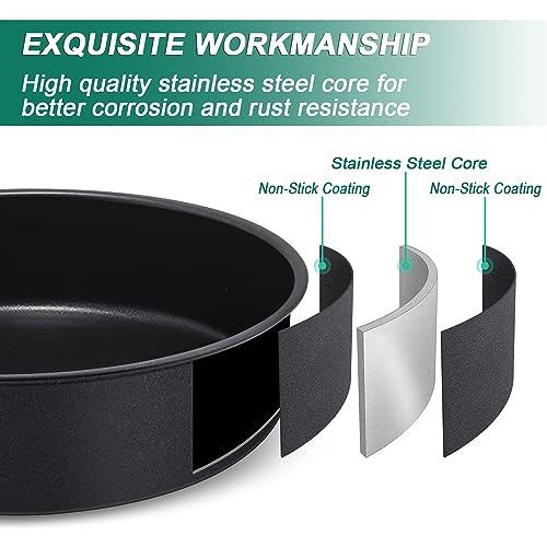 HEALTHY STAINLESS STEEL CORE:Made of food grade stainless steel core ensure NO toxic thing release into your food during use, Rust-resistant and healthful for your daily use, Far Superior to aluminum or Teflon core cake pan