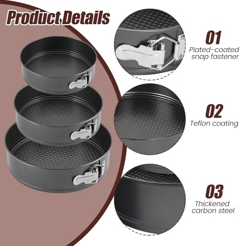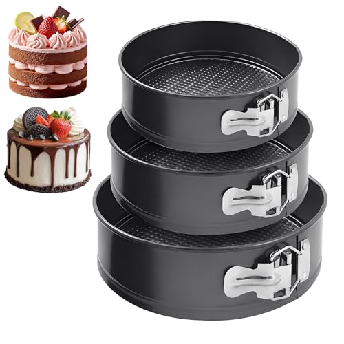 round cake tin set 3pcs, springform cake pan leakproof cheesecake pan carbon steel non-stick baking tray with removable bottom for cakes baking (12/18/22cm)