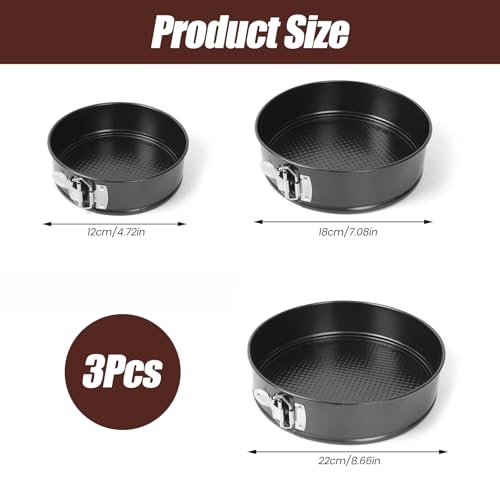 Round Cake Tin Set 3PCS, Springform Cake Pan Leakproof Cheesecake Pan Carbon Steel Non-Stick Baking Tray with Removable Bottom for Cakes Baking (12/18/22cm)