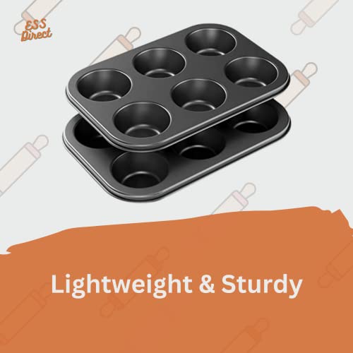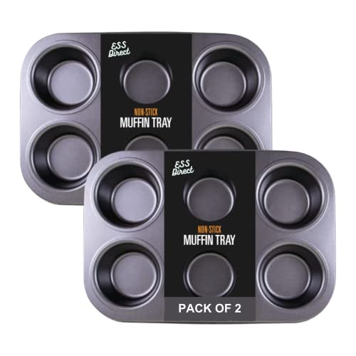 2 Pack Muffin Tins Cupcake Tray 6 Cup Set – Nonstick Cup Cake Tins – Premium Quality Teflon Coating – Muffin Cupcakes Pan, Brownies Tray Non Stick Muffin Tray Tin Yorkshire Pudding Pies Tin ESS Direct