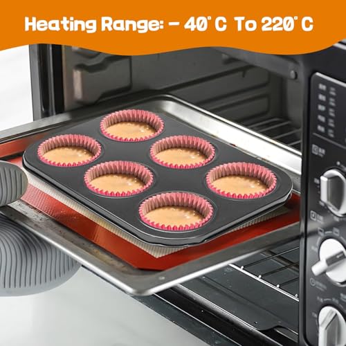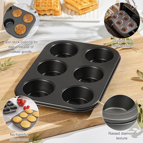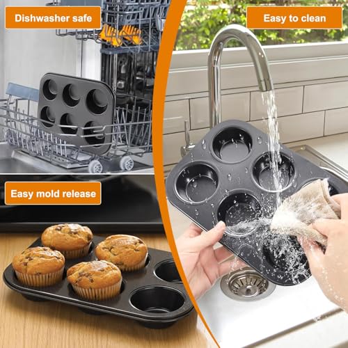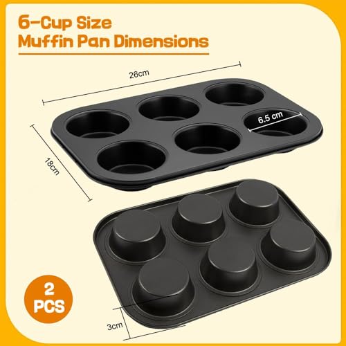 Perfect Set: This cupcake baking tray includes two 6-cup baking trays, each measuring 35 × 26 × 3.5 cm. Each muffin cup measures 7 cm in diameter at the top, 5 cm at the bottom, and 3 cm in depth. From cookies to cupcakes, muffins, and more, this tray will help you bake delicious treats.