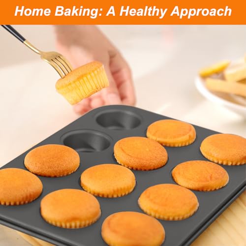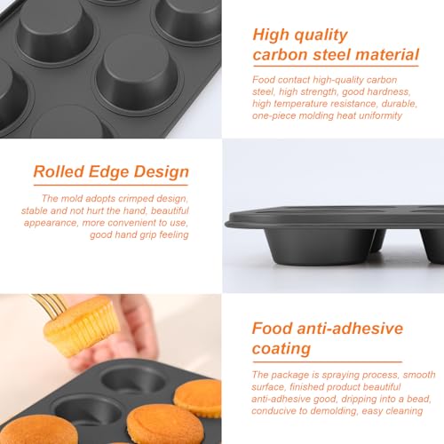 【Premium quality material】: The muffin tray is made of carbon steel, baked goods will not stick to the bottom of the baking tray due to the non-stick surface, easy to clean