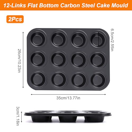 2pcs Muffins Pan, Non-Stick Muffin Cupcake Tin,Baking Mould for Muffins,Muffin Tray for Egg Muffins, Cookies, Cake Pops, Tarts, Pudding