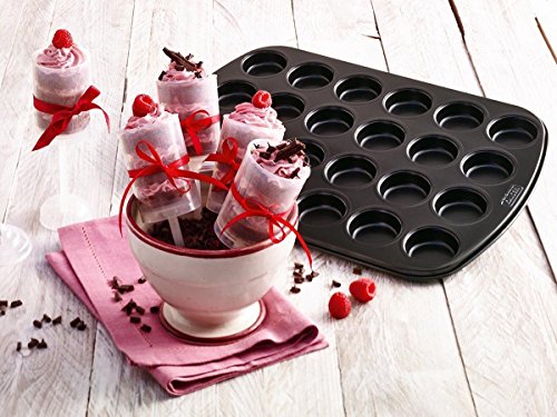 Teflon Non-Stick Premium Coated 24 Mini Cup Muffin Tray, Length 38cm x Width 26cm, Black