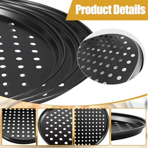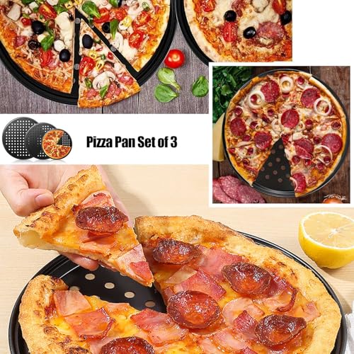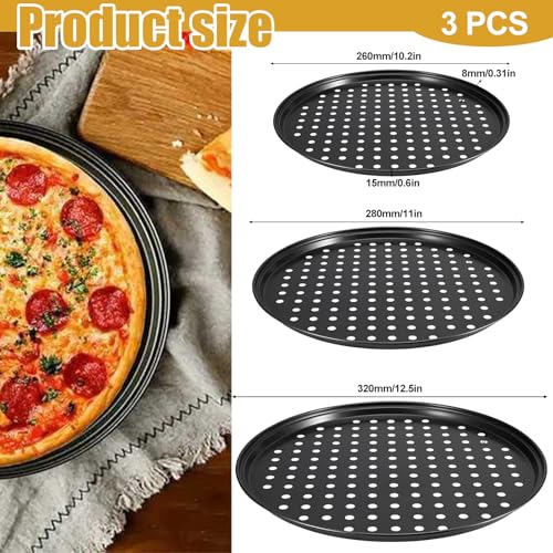 3 Pack Pizza Tray – 10/11/12.5 Inch Non Stick Pans, Perforated Baking Tray for Oven, Pizza Pans with Holes for Baking Pan Home Kitchen, Round Baking Pan Set, Fridge, Oven and Dishwasher Safe – Black
