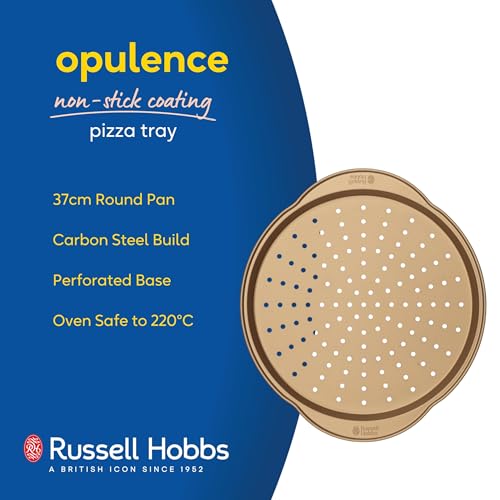 Russell Hobbs Opulence Pizza Tray – 37cm Non-Stick Carbon Steel Round Pan with Perforated Base for Even Heat Distribution, Ideal for Pizza, Chips & Garlic Bread, Oven Safe to 220°C