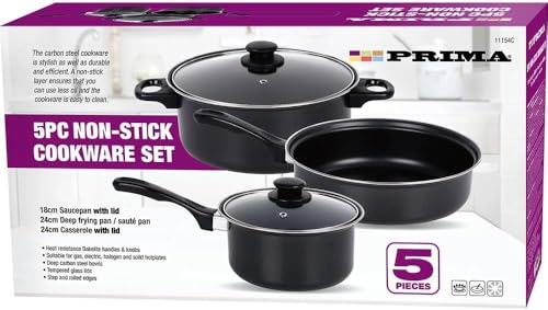 Non Stick Cookware Sets – Multi Purpose, Kitchen Cooking Pans | Kitchenware, Strong & Durable Carbon Steel with Cool Bakelite Handles, Milk Pan Saucepan (6pc Non Stick Cookware Set)
