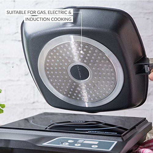 LARGE NON-STICK COOKING SURFACE WITH EVEN HEATING — With a 28cm surface, this induction griddle pan offers excellent heat distribution—ideal for large portions and batch cooking. The PFOA-free non-stick coating ensures easy cleanup, while the cast aluminium base performs like a lightweight griddle pan cast iron option.