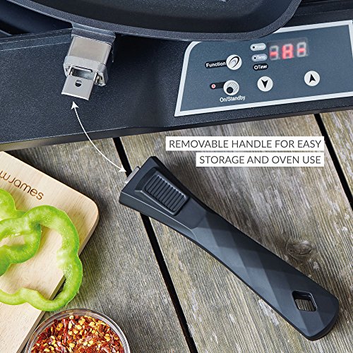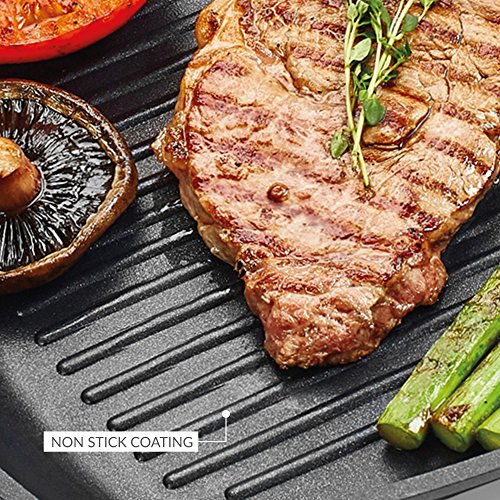 Andrew James Griddle Pan for All Hobs, 28cm, Detachable Handle, Steak Skillet for Induction, Gas BBQs, Fire Pits & Camping Stoves, Oven-Proof Non-Stick Aluminium Frying, Grill Meat Fish & Veg