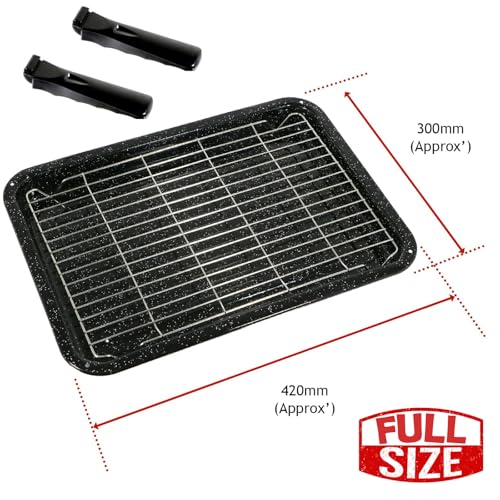 Universal Replacement Large Enamel Grill Pan with Detachable Handles to fit all models of Oven Cooker