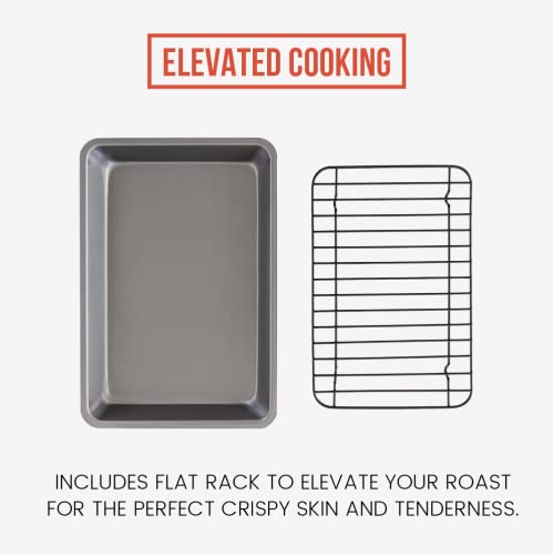 Chef Pomodoro Nonstick Carbon Steel Small Roasting Pan Roaster with Flat Rack, 11 x 7.7-Inch, Petite Mini, Grey, Bakeware Toaster Oven Countertop Oven Baking, Single Serving