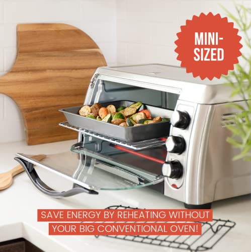 SMALL PAN ROASTER WITH FLAT ROASTING RACK: Designed to fit small countertop and toaster ovens, this mini version of our turkey roasting pan with rack is perfect for snappy, convenient recipes or intimate dinner preps for up to two people.