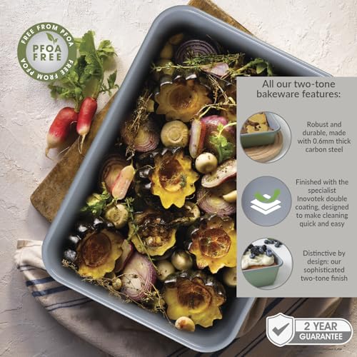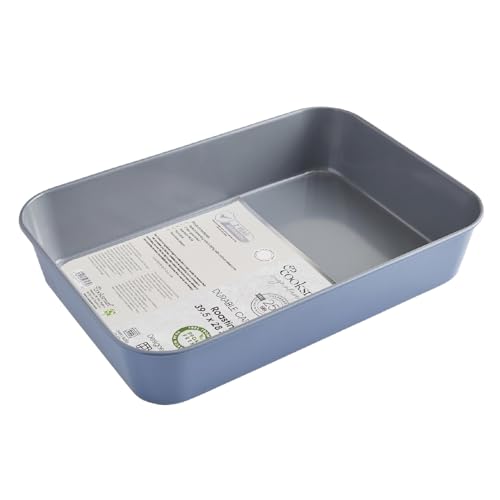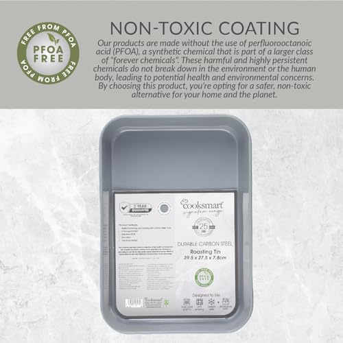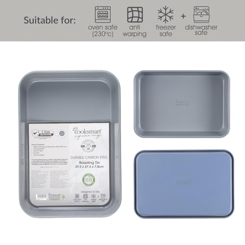 Cooksmart Signature Roasting Tin 39cm – Cast Aluminum with Iron Rack | PFOA-Free Non-Stick Coating | Oven Compatible | Dishwasher Safe | Elegant Blue Finish | Ideal for Deep Roasting & Baking