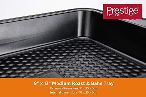Prestige Aerolift Roasting Tray Non Stick, Dishwasher Safe Oven Tray with Large Handles, Durable Carbon Steel Roasting Tin, 33 x 23 x 5 cm, 9″ x 13″