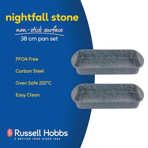 Russell Hobbs COMBO-5446 Roasting Pan Set of 2-38cm Non Stick Oven Roasting Tray with Handles, PFOA Free, Carbon Steel, Roast Chicken Tray, Family Sized for Vegetables & Meat, Oven Safe to 220°C