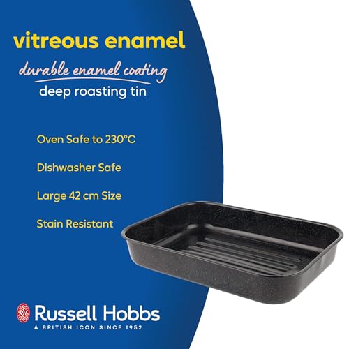 Russell Hobbs CW11431 Deep Roasting Tin, Vitreous Enamel Coated Large Roaster, Oven Baking Dish, Roast Chicken Tray, Meal/Vegetables, Dishwasher Safe, Romano Collection, 42 cm, Black