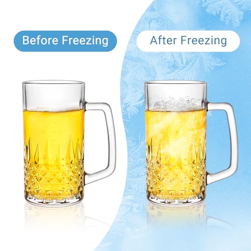 Beer Mug Set of 2, 580ml Crystal Beer Glasses with Handle, Large Glass Mugs for Freezer, Gifts for Men, Dad, Father’s Day